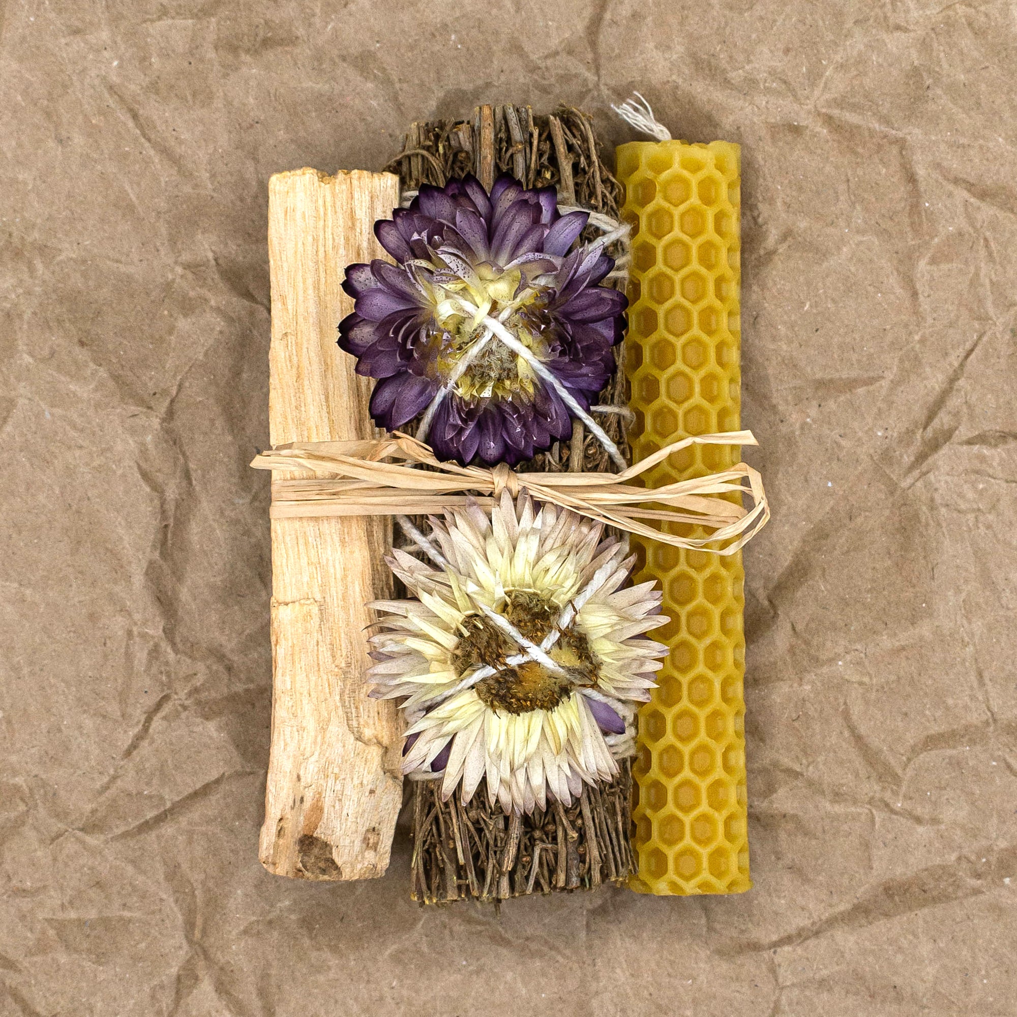 Great question! Our candles are made from a 100% natural wax blend which consists mostly of beeswax and soy wax and an organic cotton wick.