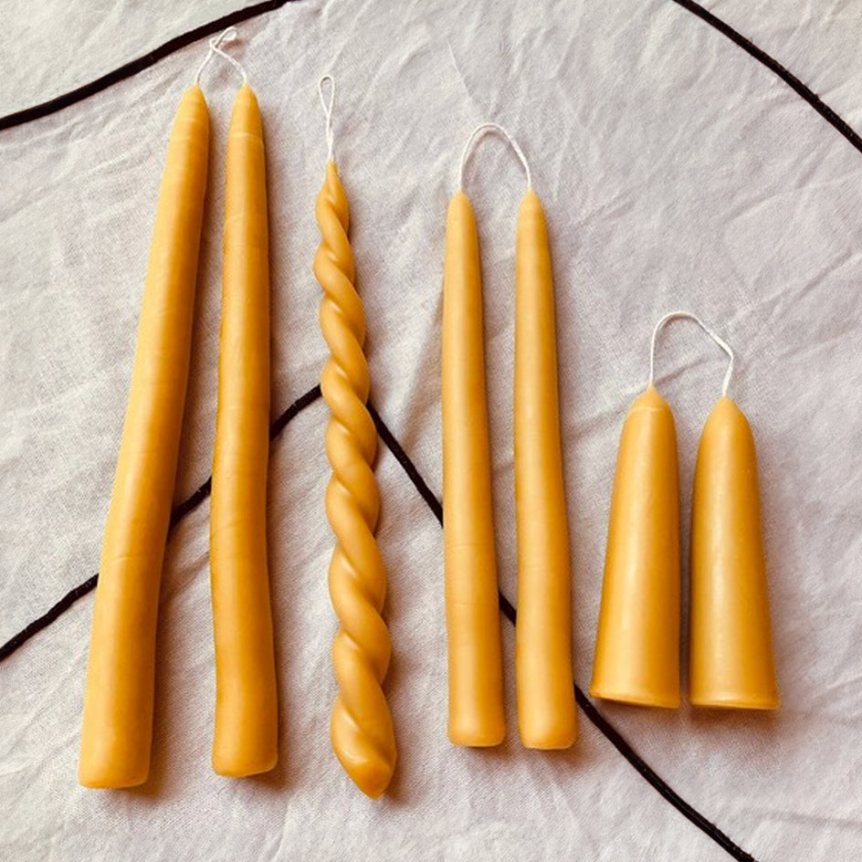 Yep! Every single one! I fell in love with the craft of candle making a decade ago. All of our candles are crafted with care in our Wax Atelier, located right above our honey and beeswax processing studio. Each creation is designed by me and infused with inspiration from Mama Earth. From psychedelic rainbow mushrooms to funky tie-dye wavy pillars, we love playing with wax alchemy. Each candle is hand poured and individually coloured using a specific technique, making each piece unique in its design.